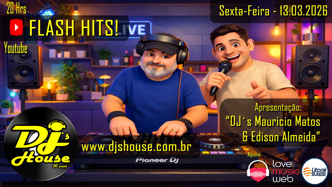 Nesta sexta-feira tem DJ’s House ao vivo, trazendo uma noite especial com os Flash Hits que marcaram época! Prepare-se para reviver os grandes sucessos que embalaram pistas de dança e rádios pelo mundo.