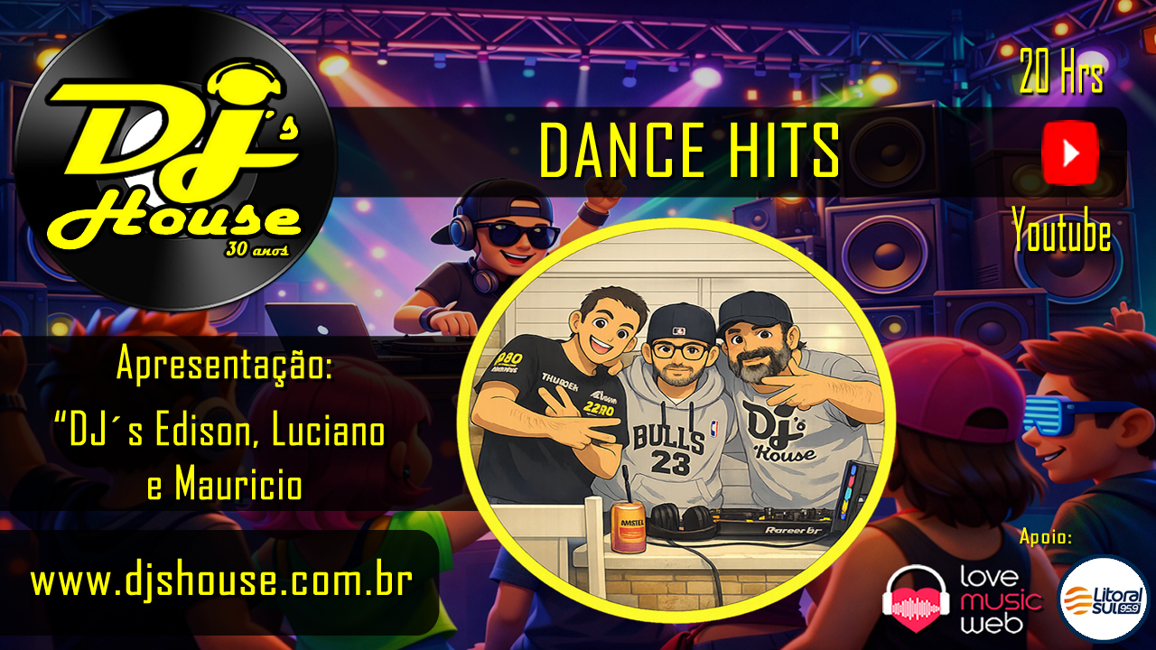 Nesta sexta-feira, Live da Dj´s House, com os Dj´s Edison, Luciano e Mauricio, vão agitar sua noite com muita nostalgia, sucessos dos anos 90 / 2000 e muito mais diretamente do estúdio 1 da Djs House !! Vai ser um verdadeiro “baile de garagem” em sua casa !!