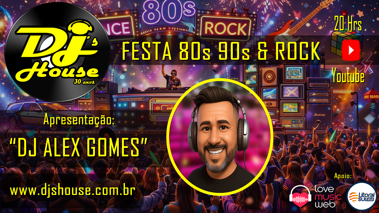 Nesta sexta-feira, Live da Dj´s House, com os Dj Alex Gomes, vai agitar sua noite com muita nostalgia, sucessos dos anos 80/90 e um Rock no Final!! Diretamente do estúdio 3 da Djs House !! Vai ser um verdadeiro “baile de garagem” em sua casa !!