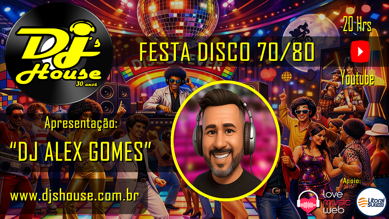 Nesta sexta-feira, a DJ’s House apresenta mais uma live imperdível, trazendo toda a energia da músicas dos anos 70 e 80 uma verdadeira “FESTA DISCO”, repleta de batidas marcantes, hits inesquecíveis e aquela nostalgia que marcou época.
